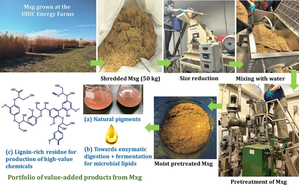 They recovered industrially relevant quantities of high-value pigments, microbial liquids, and lignin-based chemicals from Miscanthus x giganteus (Mxg). The results were reported recently in the Chemical Engineering Journal by a team led by Vijay Singh, IBRL Director and Professor of Agricultural and Bioengineering at Illinois, and Bruce Dien of the USDA Agricultural Research Service.